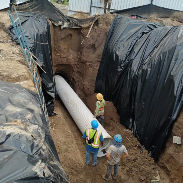 - Instalación de tuberías subterráneas para agua (Tubería para transportar agua potable, Tubería para aguas negras a gravedad y tubería para aguas lluvias a gravedad)